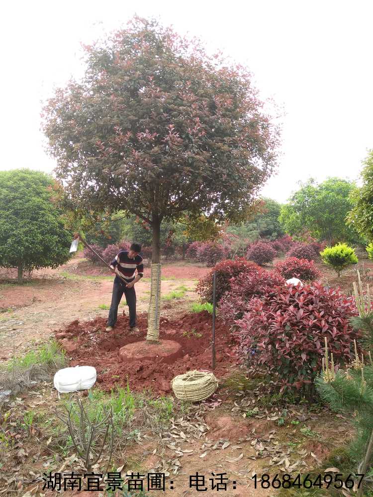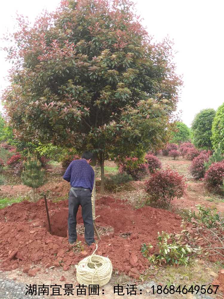 湖南苗木基地批發各規格精品紅葉石楠高桿行道樹,基地自產自銷,歡迎實地選購