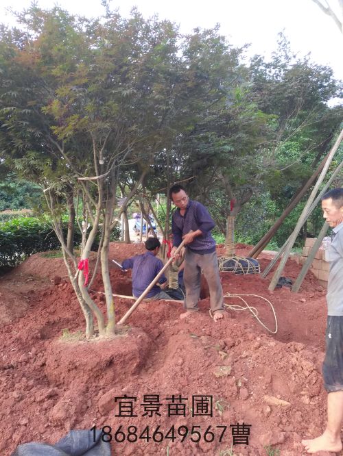 湖南長沙瀏陽精品紅楓叢生單桿出貨
